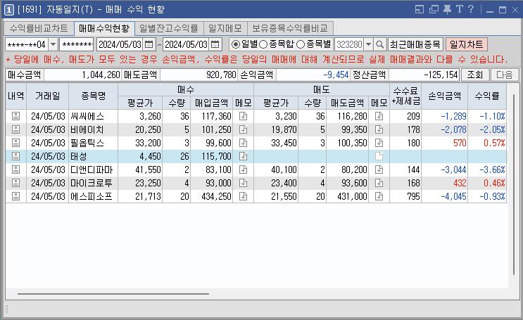 2024년 5월 7일(화) 특징주 및 시간외 / 매매일지 (0) | 2024.05.07 |
