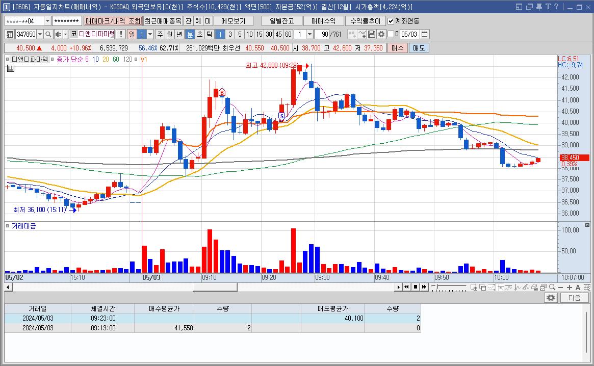 손실을 만회하려고 이 종목 저 종목 서칭하고 다니면서 매매를 한 것 같다