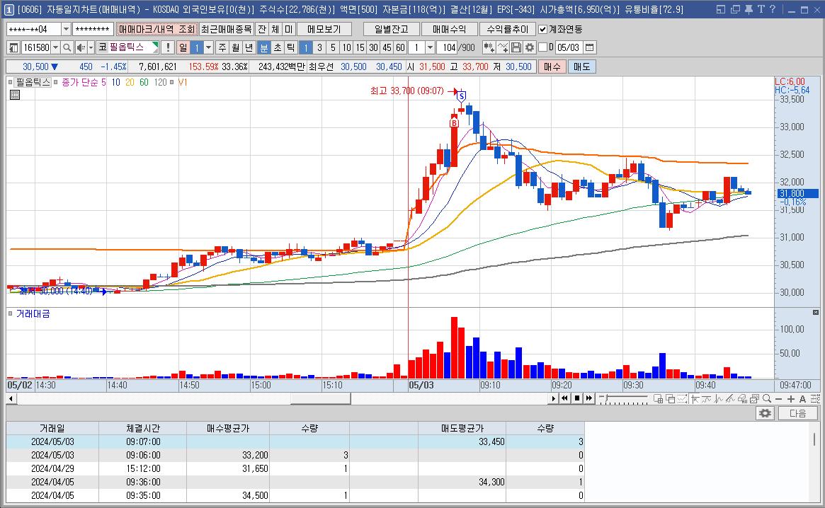 이 종목을 손절하고 에스피소프트로 갈아탔는데 결과적으로 보면 여기 가만 있었으면 수익이었을텐데