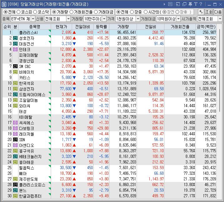 스카이문스테크놀로지 | 30.00 | 806 | '700억 규모' 전환사채 발행 결정 소식 75억원 3자배정 유상증자 결정 소식 지속 부각 |
