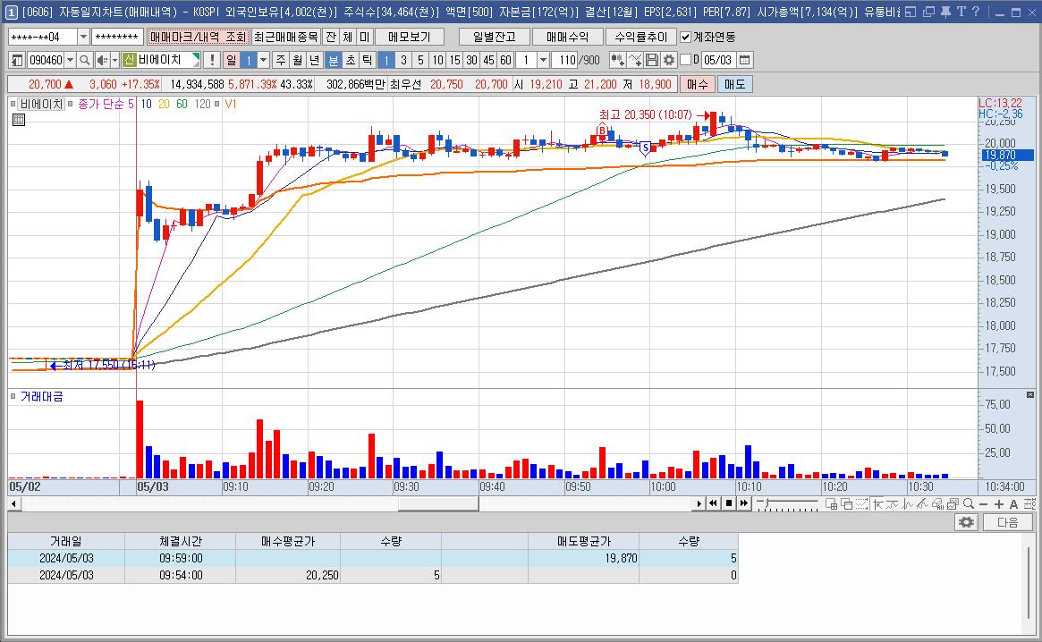 비에이치 | 17.35 | 298,090 | AI 탑재 아이폰 수혜 경연성회로기판(RFPCB) 매출증가로 실적증가 기대감 |