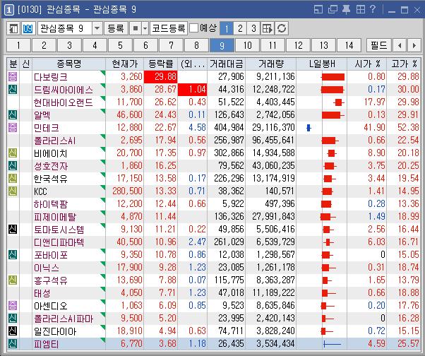 한국석유 | 13.58 | 223,017 | 이라크 무장단체 이스라엘 공격 소식 속 정유주 강세 |