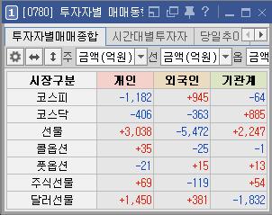 장 중에 선물에서 외국인이 하루종일 숏포지션으로 팔고만 있다면 그날은 매매를 대폭 줄이거나