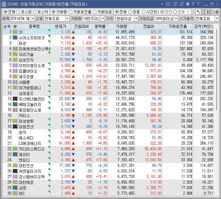 네패스아크 | 8.75 | 128,733 | 엔비디아, FOPLP 기술 도입 검토 소식 속 계열사 네패스라웨 기술 상용화 부각 상승 |