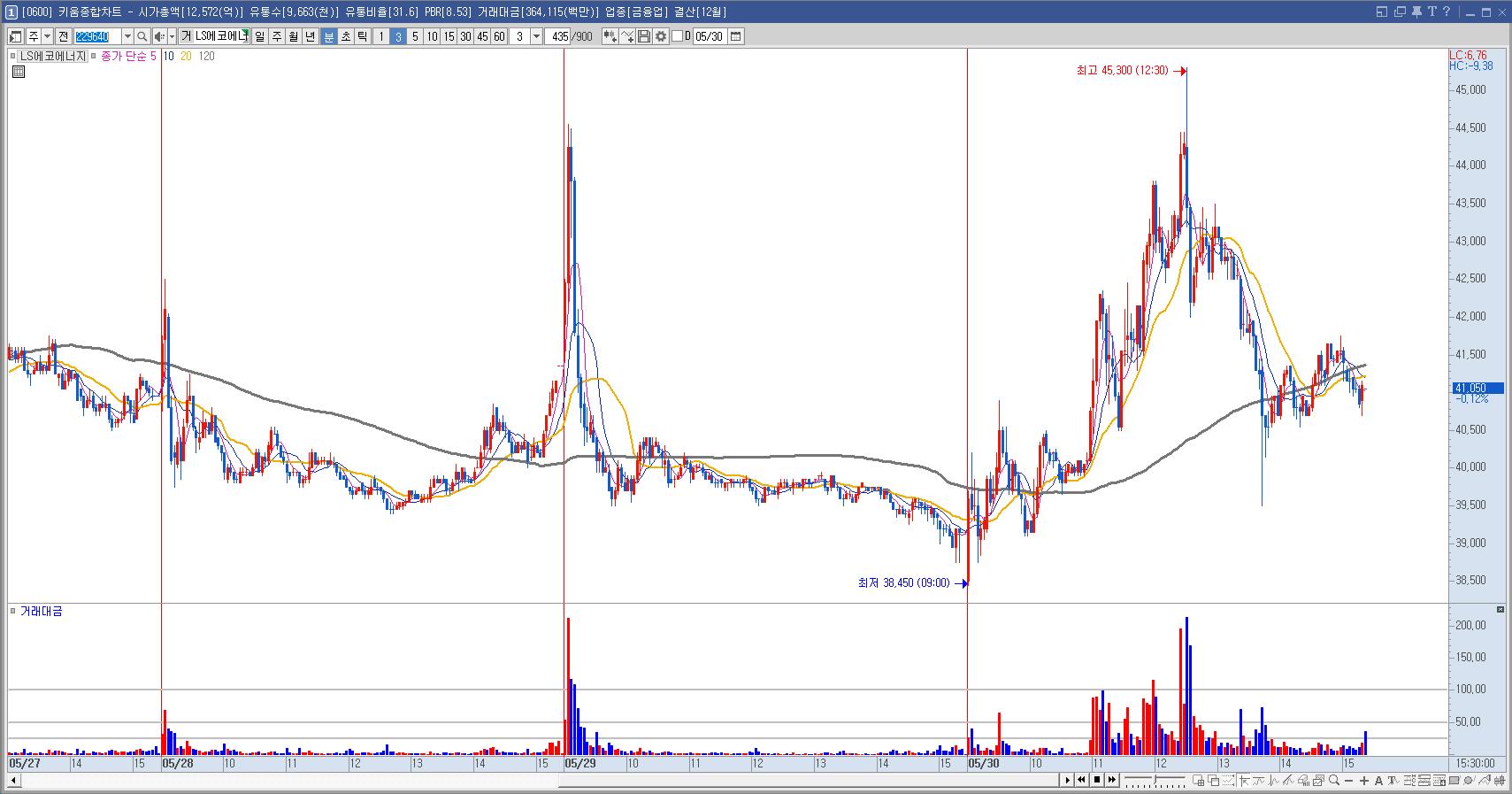 거래대금이 터지면서 시초가를 강하게 돌파하는 모습에 매수