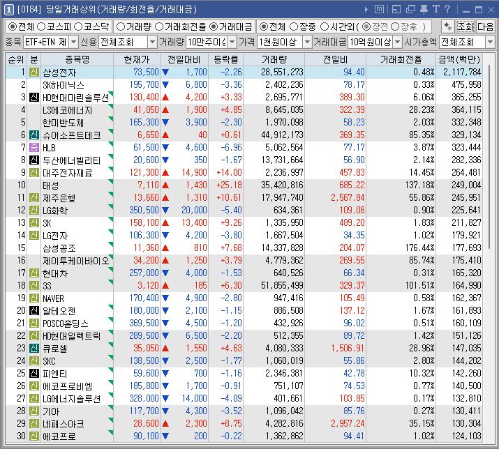 종목명 | 등락률 | 거래대금(백만) | 이유 |