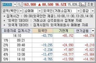 10시쯤 잠정수치에 기관(연기금 등)이 매수하는게 떴는데 지금까지 신규주는 대부분 양매도였는데