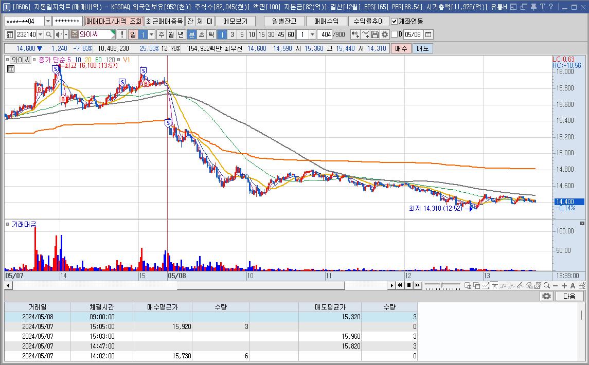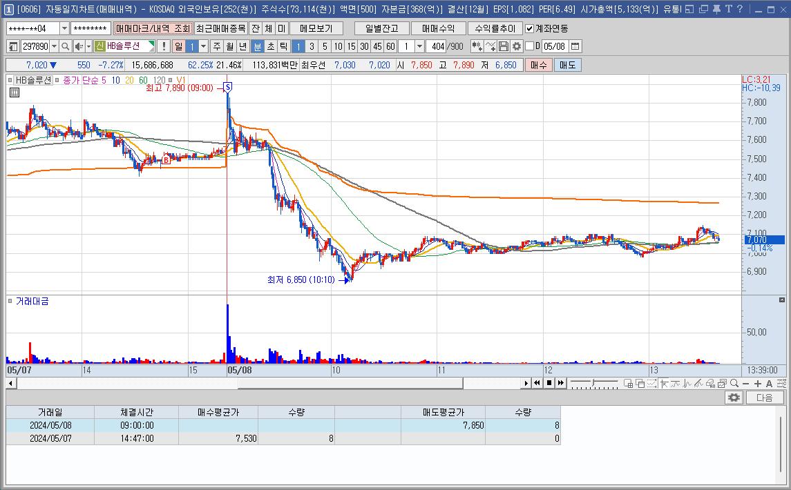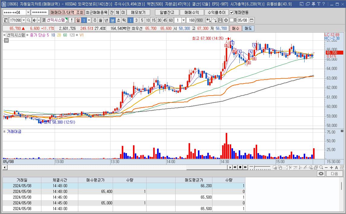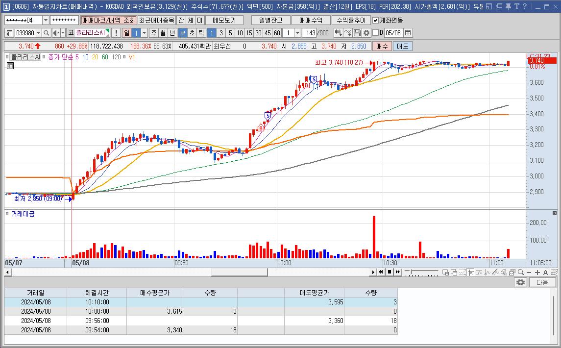 최근 신규주가 약해서 관심을 안가지고 있었는데 10시쯤 매매를 끝내고 점심시간 지나고 와보니