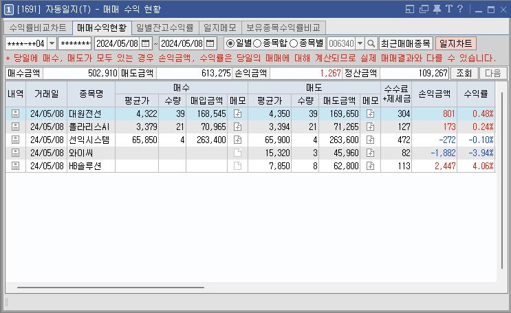 2024년 5월 10일(금) 특징주 및 시간외 / 매매일지 (0) | 2024.05.10 |