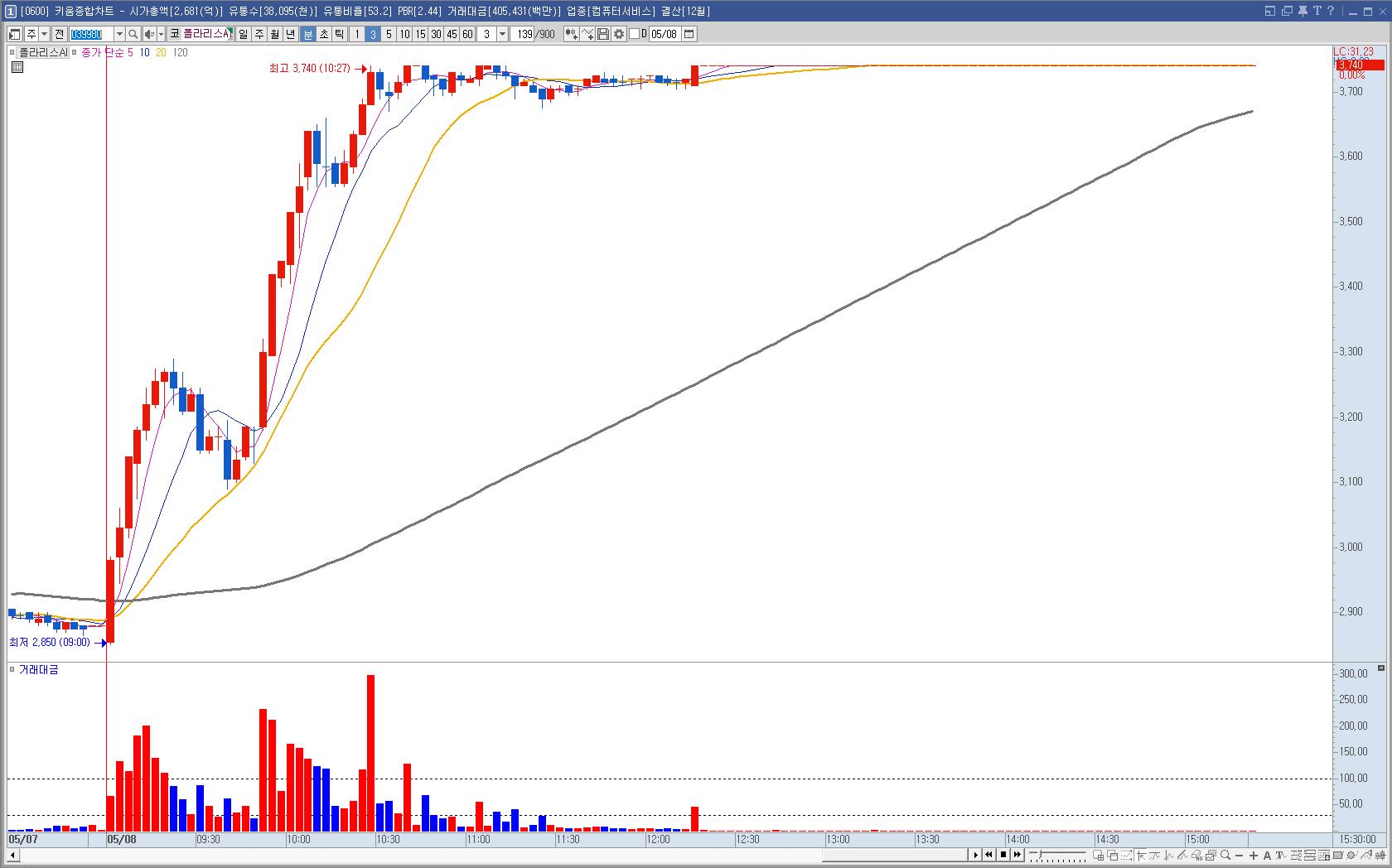 이것도 종가베팅 후보로 올려놨으나 상한가에 들어가버렸다