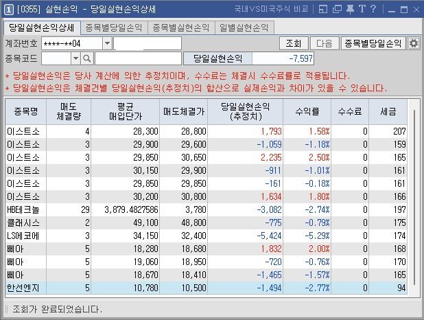 전일 종가를 깨는 모습에 매도했고 손실이 컸다