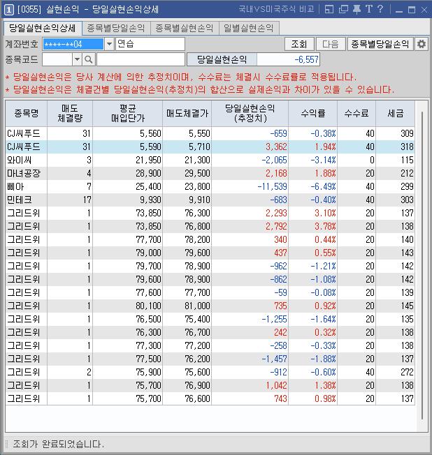신규주로 벌었던 것을 다 까먹고 마이너스 전환이 되었다