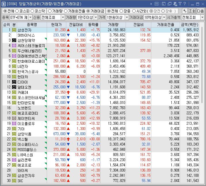 씨어스테크놀로지 | -3.08 | 4,607 | 투자주의]단일계좌 거래량 상위종목 |