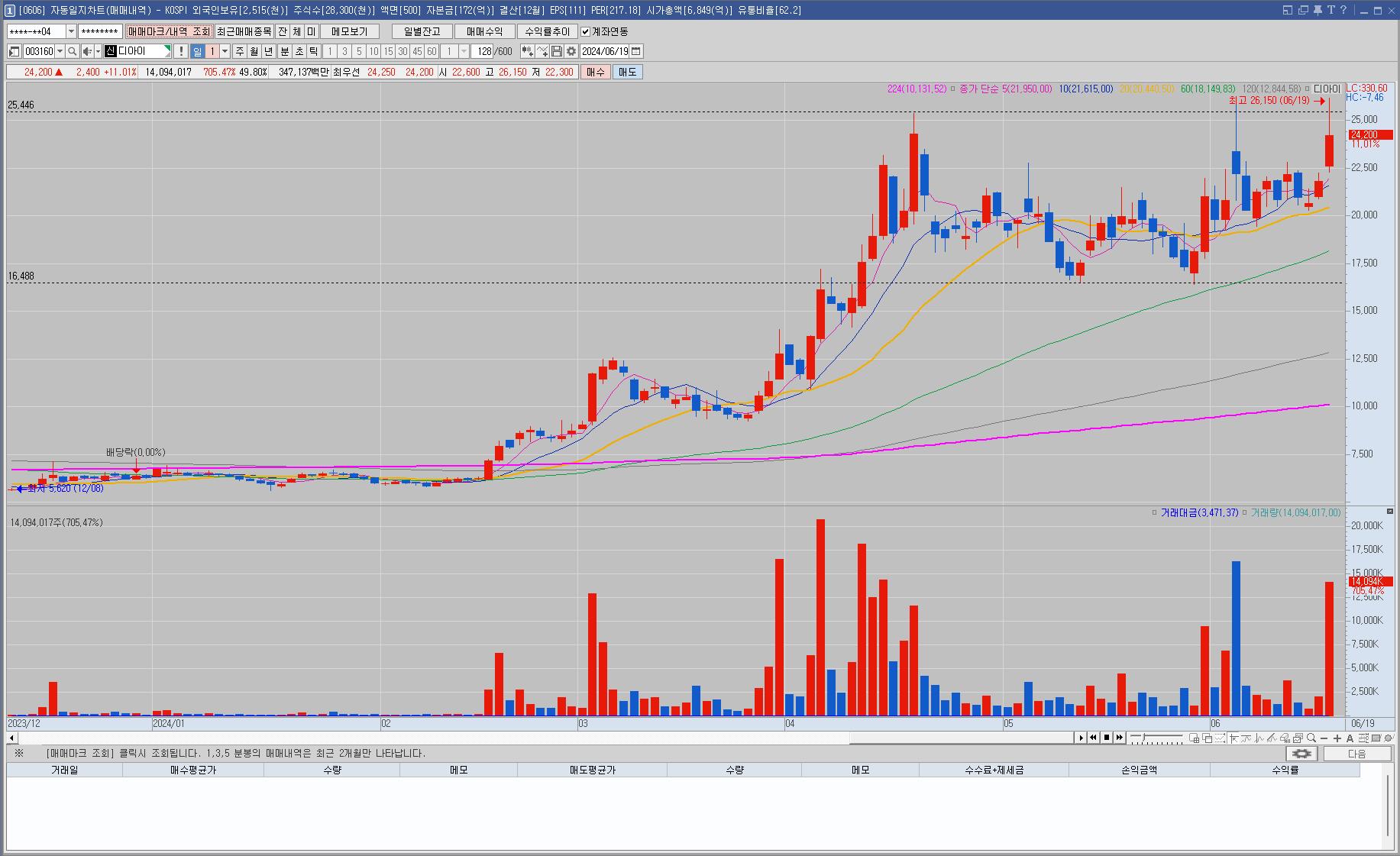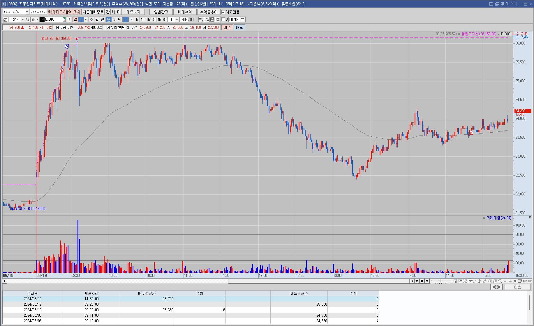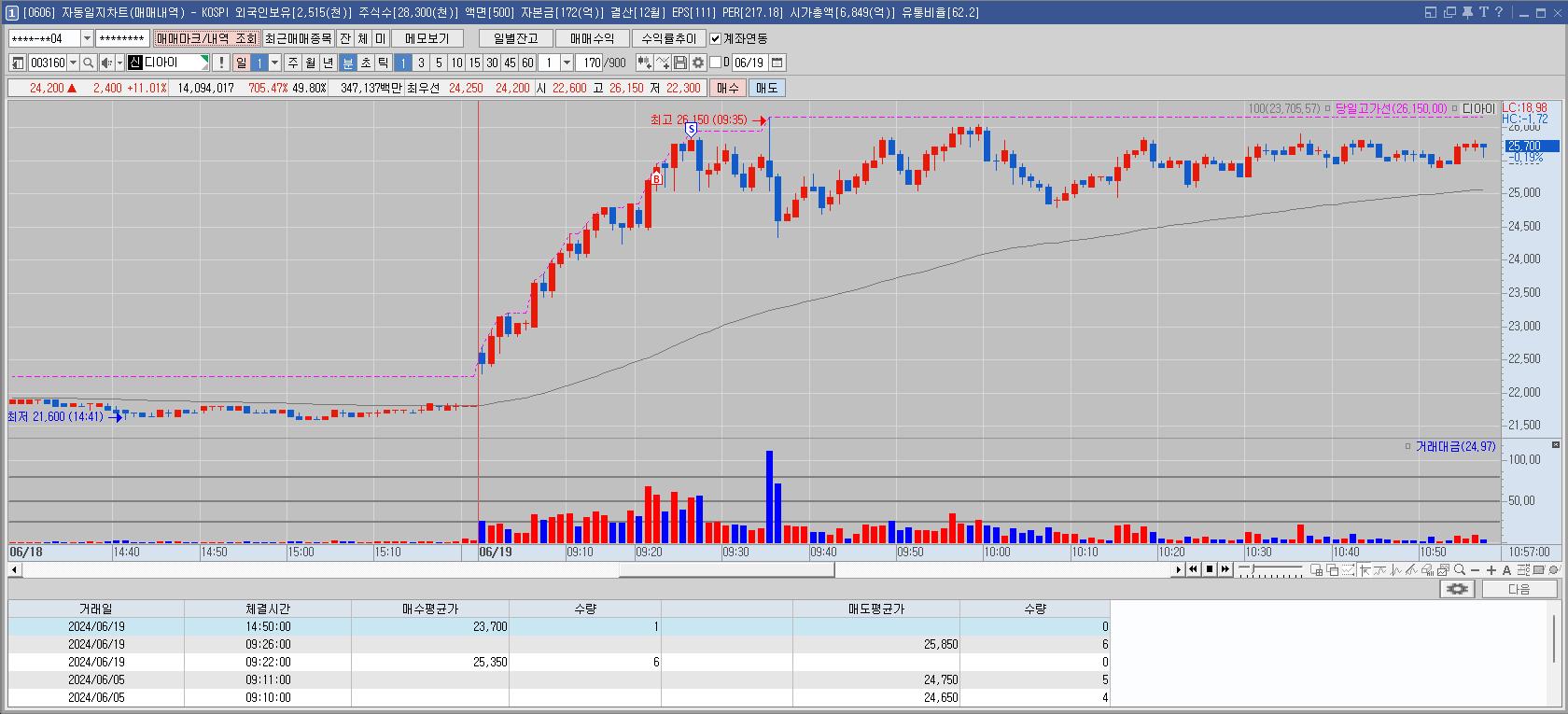 오늘도 병원에 가느라 초반에만 매매하고 매매를 더 못했는데 이 후 신규주 하나가 꽤 큰 변동성을 보여줬다