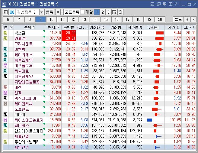 장 시작전 전력테마가 인기가 있던데다 장 시작후에도 테마가 강한 모습을 확인하고