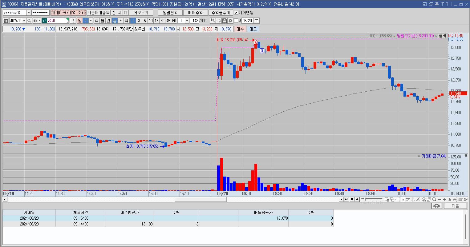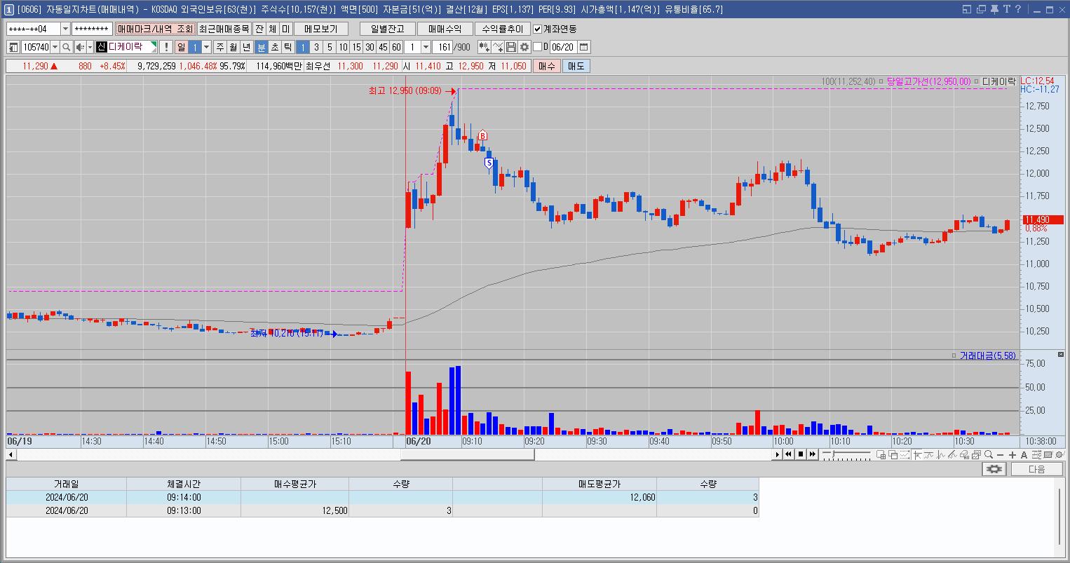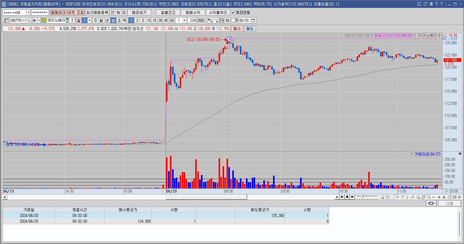 시초가가 높게 떠서 안하려고 생각하고 있었는데 강하게 상승하는 모습에 뇌동매매