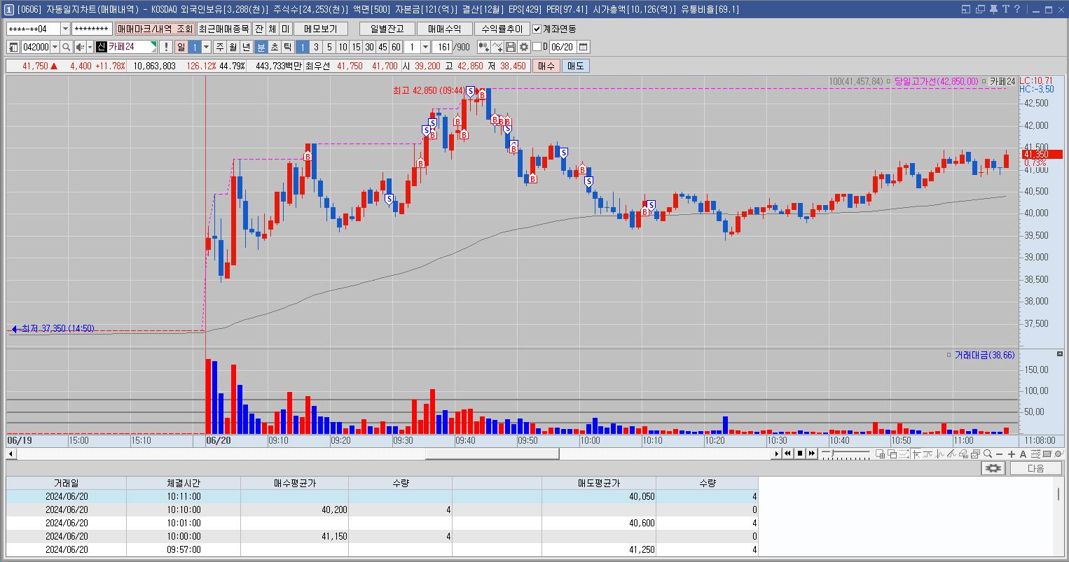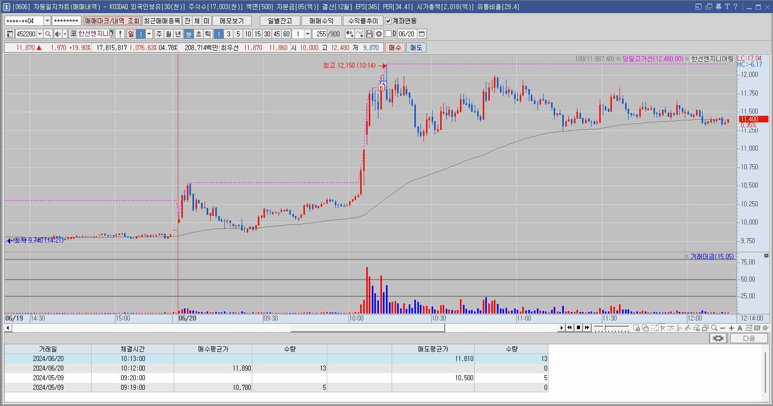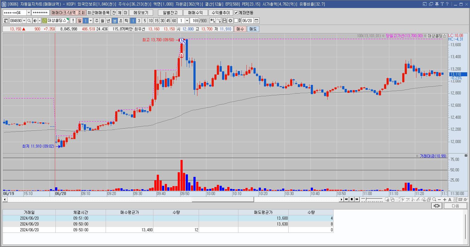 시초가가 높게 떠서 안하려고 생각하고 있었는데 강하게 상승하는 모습에 뇌동매매