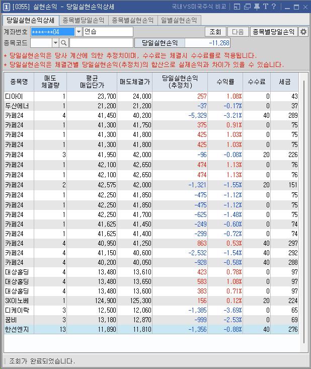 오늘 같은 날은 미리 눈치를 채고 매매를 안해야 하는 시장인데 매매를 하는 것에 몰두하느라 손실만 키웠다
