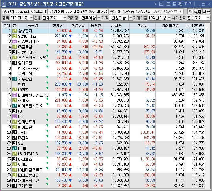 종목명 | 등락률 | 거래대금(백만) | 이유 |