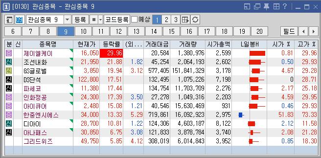 인화정공 | 17.39 | 26,919 | '아시아나 화물사업 인수' 가능성에 에어인천 실소유주 부각 |