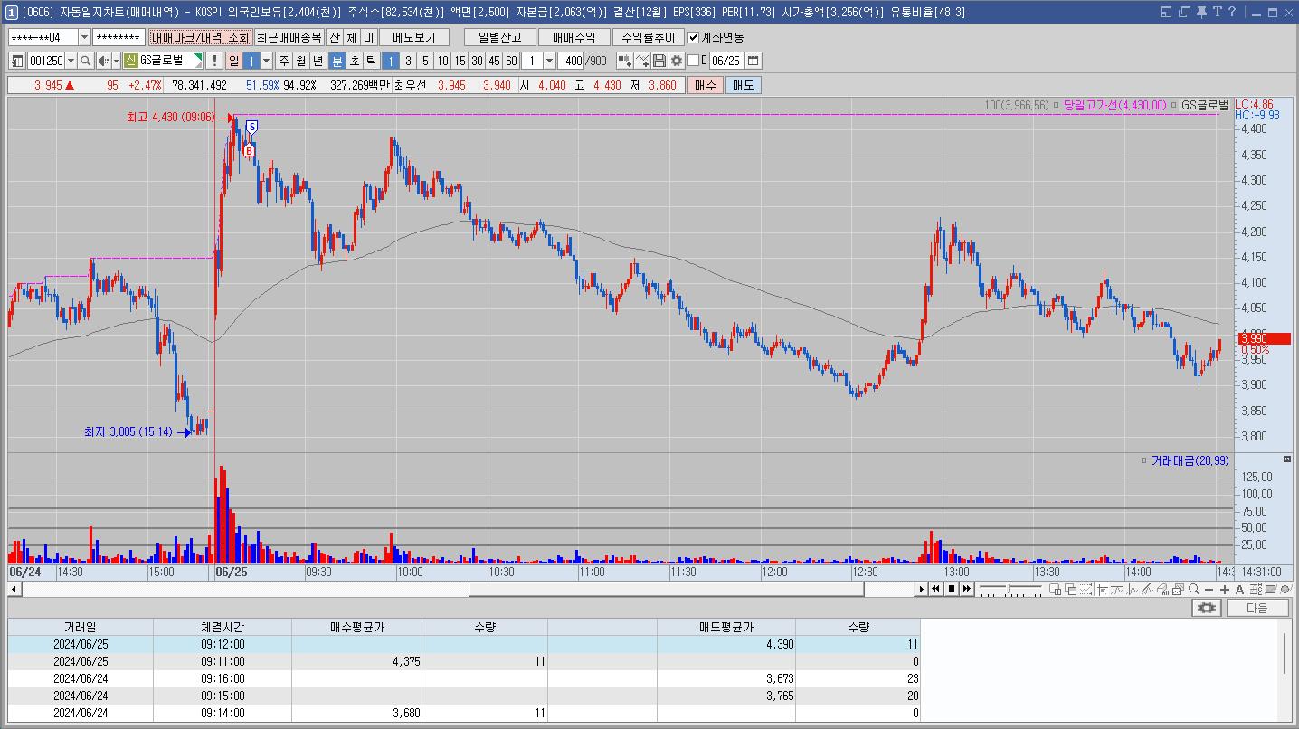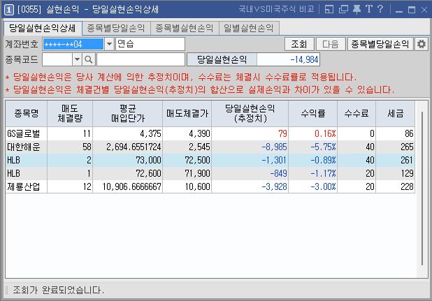 비중을 적게 들어가서 손실이 적었지만 중간에 해운주가 테마를 이루며 강하게 상승하는 모습에