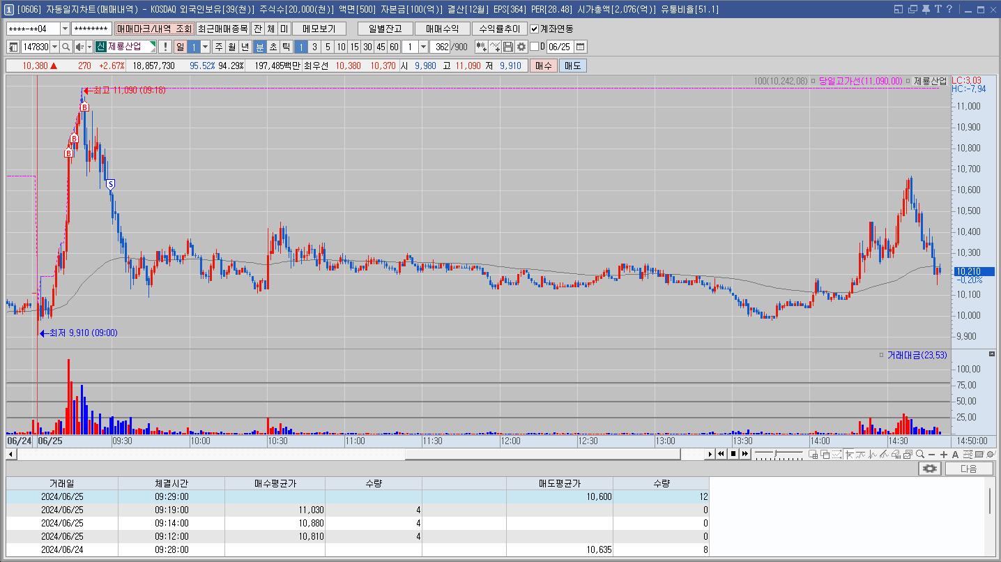 흐름이 다시 올라줄듯 했으나 거래대금이 점점 말라가며 하락하는 것 같은 모습에 손절했는데