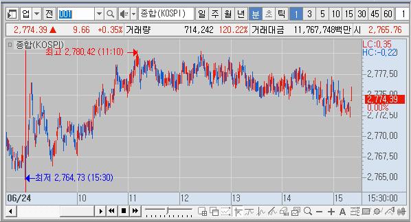 분봉을 확대해서 보고 있었더니 주가가 흐르는건지 횡보하는건지 구분이 어려웠다