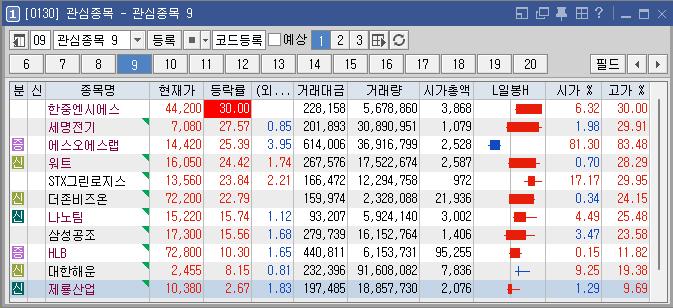 개별주 | 한중엔시에스 라이프시맨틱스 세명전기 에스오에스랩 워트 더존비즈온 스킨앤스킨 레뷰코퍼레이션 와이바이오로직스 HLB |