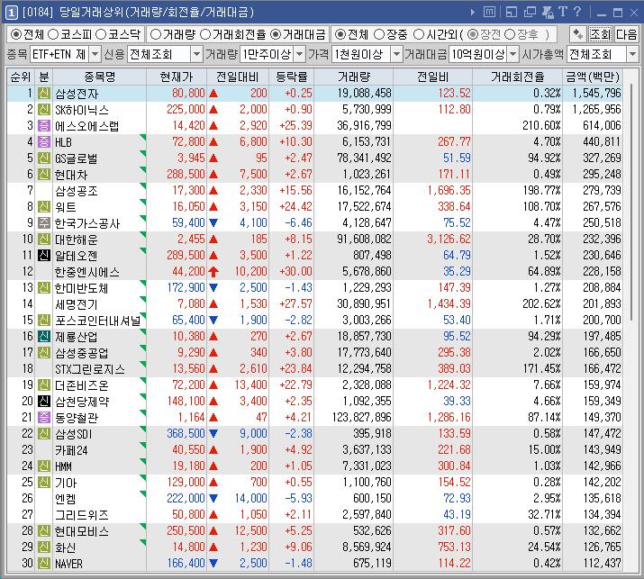종목명 | 등락률 | 거래대금(백만) | 이유 |