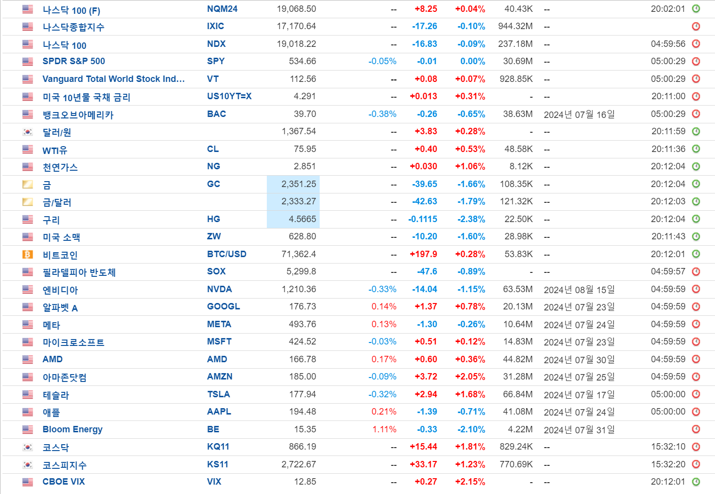 윙입푸드 | -7.15 | 1,255 | 나스닥 상장을 준비중인 것으로 알려진 윙입푸드가 상장을 7월로 연기했다는 소식에 하락 |