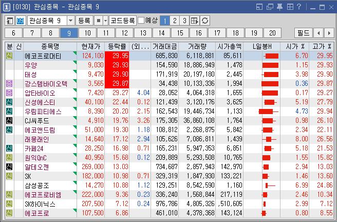 SBI인베스트 | 9.97 | 2,145 | 야놀자 관련주. 7월 나스닥 상장을 추진한다는 소식. SBI인베스트는 야놀자에 169억원을 투자한 것으로 알려짐 |