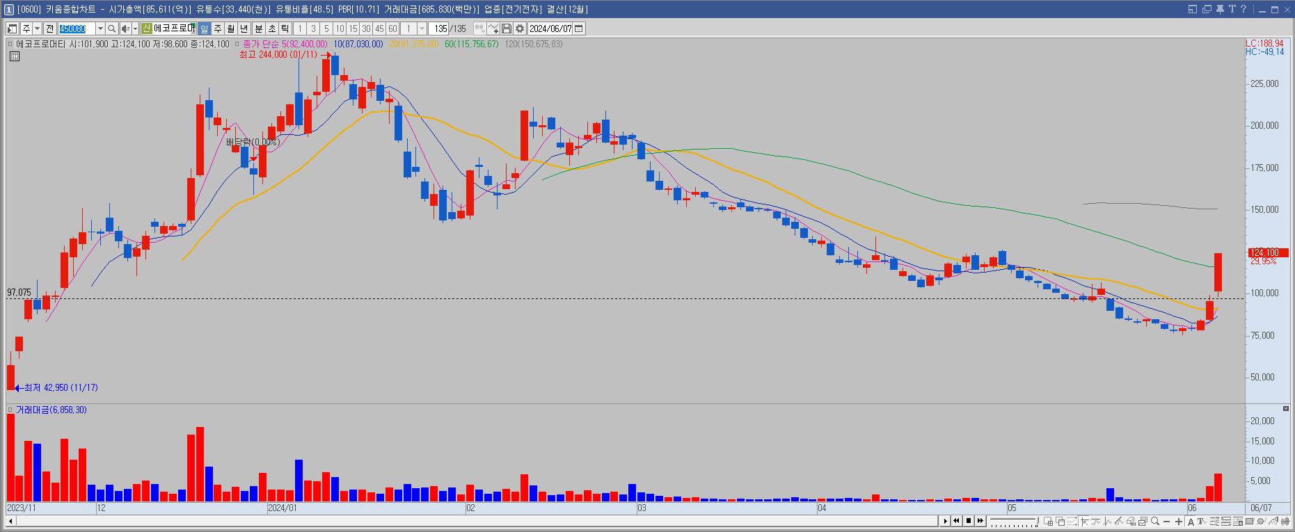 에코프로머티가 오를거란 생각을 했지만 상한가까지 가리라곤 생각못했다