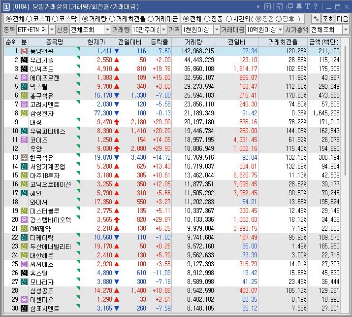 THE MIDONG | 7.69 | 263 | 상장폐지에 따른 정리매매 종목 [주의] |