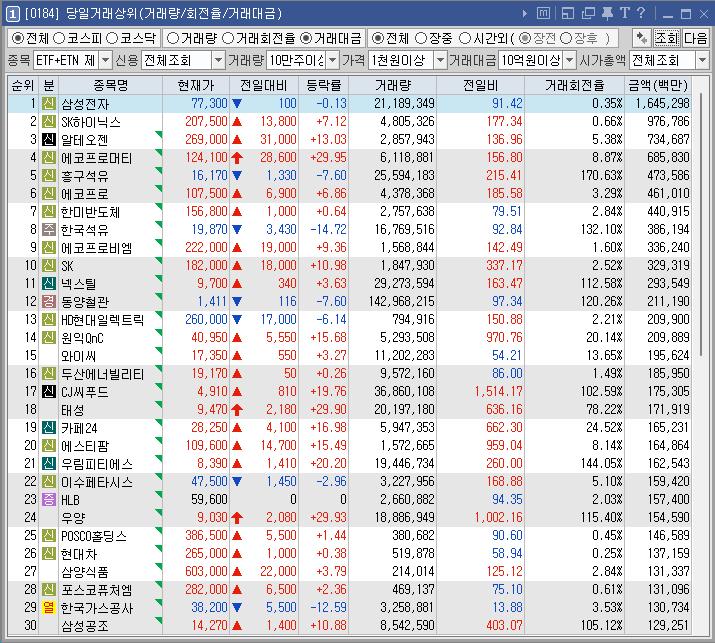 종목명 | 등락률 | 거래대금(백만) | 이유 |
