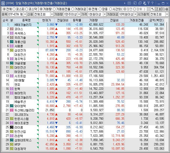 한전산업 | -3.48 | 4,273 | 투자주의]스팸관여과다종목 |
