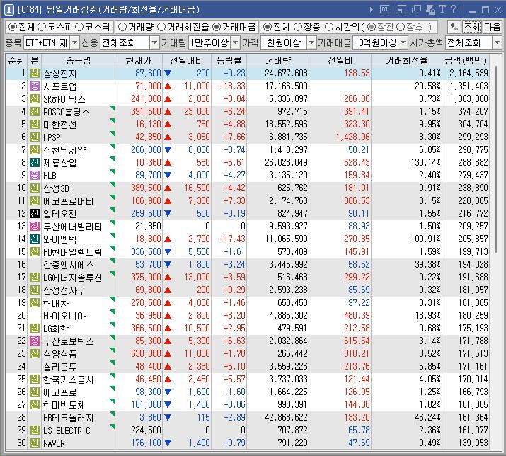 시프트업 | 18.33 | 1,340,174 | 코스피 상장 첫날 강세 |