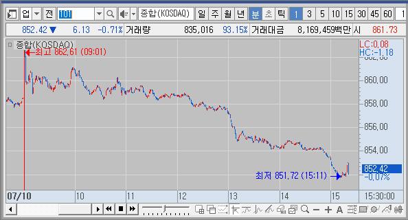 코스닥은 시총 큰 종목들의 하락에 전강후약