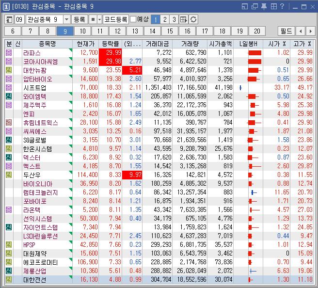코아스 | 15.09 | 38,353 | 최대주주 변경 지속 부각 |