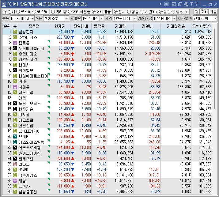 씨에스윈드 | 9.62 | 42,850 | 바이든 사퇴설 소식에 신재생 에너지 테마 반등 |