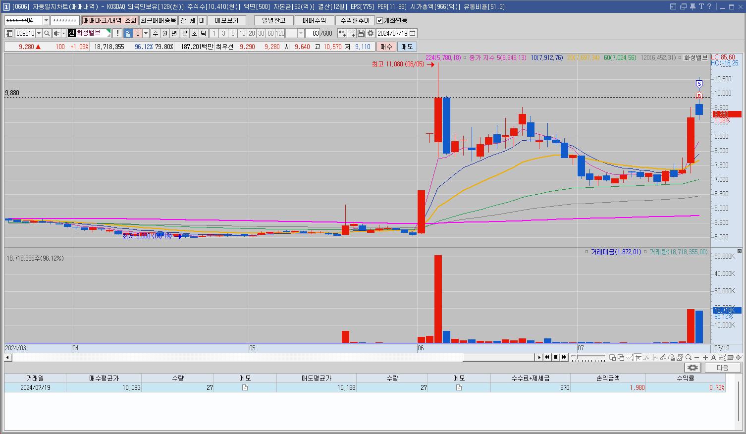 그런 중에도 올라가는 종목은 있었지만 매매를 하기엔 언제 급락할지 몰라서 구경만 해야 했다