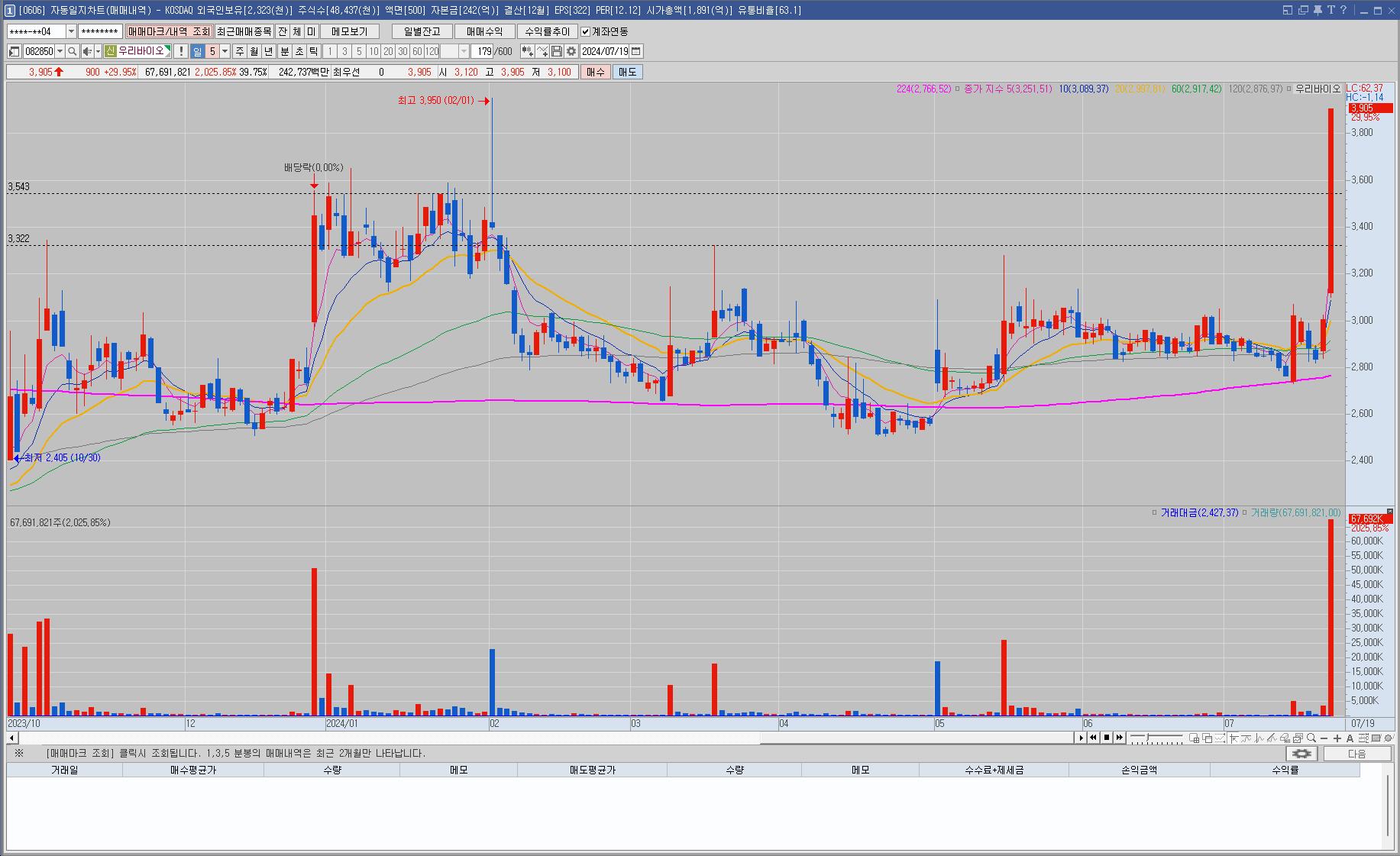 뉴스에 바이든 사퇴설이 나오면서 마리화나 관련주들이 주목받는 걸 보고 우리바이오를 지켜보고 있었는데