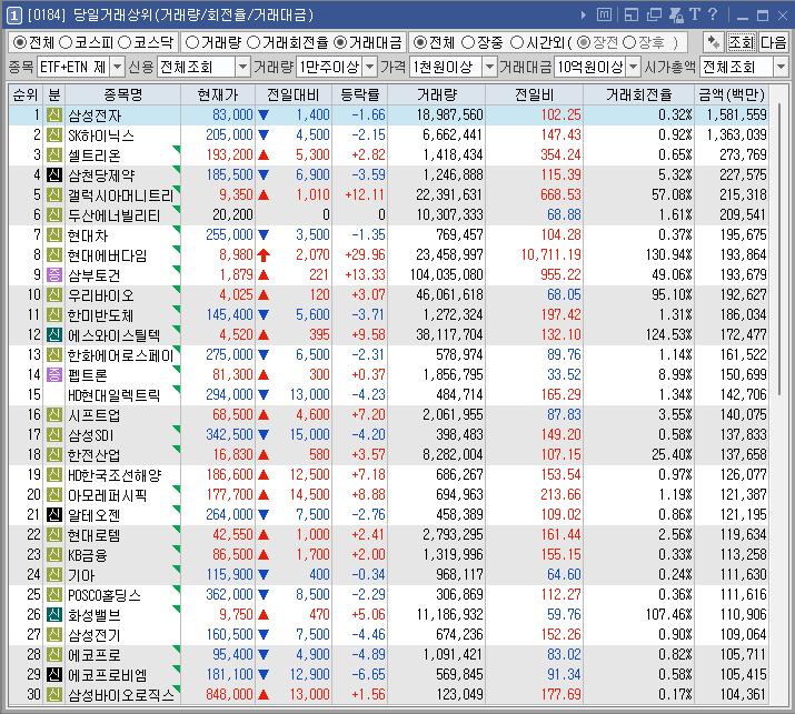 종목명 | 등락률 | 거래대금(백만) | 이유 |