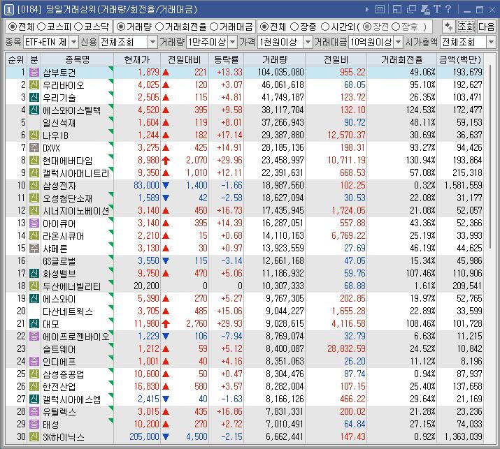 DXVX | -2.29 | 1,119 | 투자경고종목지정 |
