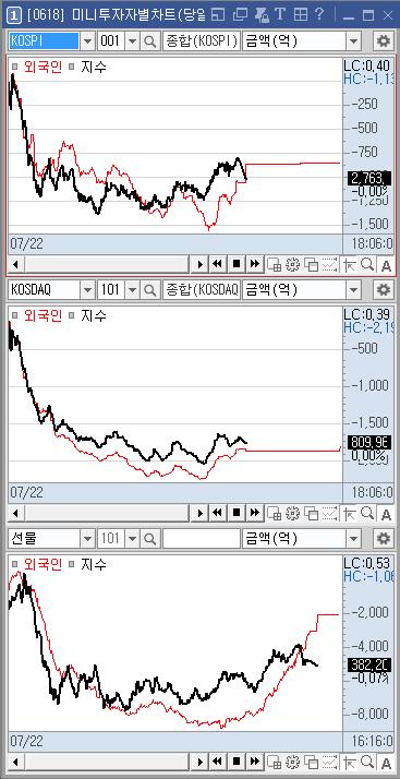 국장도 시작 전 부터 힘이 없더니 결국 하락세로 돌아섰고 외국인 선물추이도 계속 팔다가 후반에 매수전환