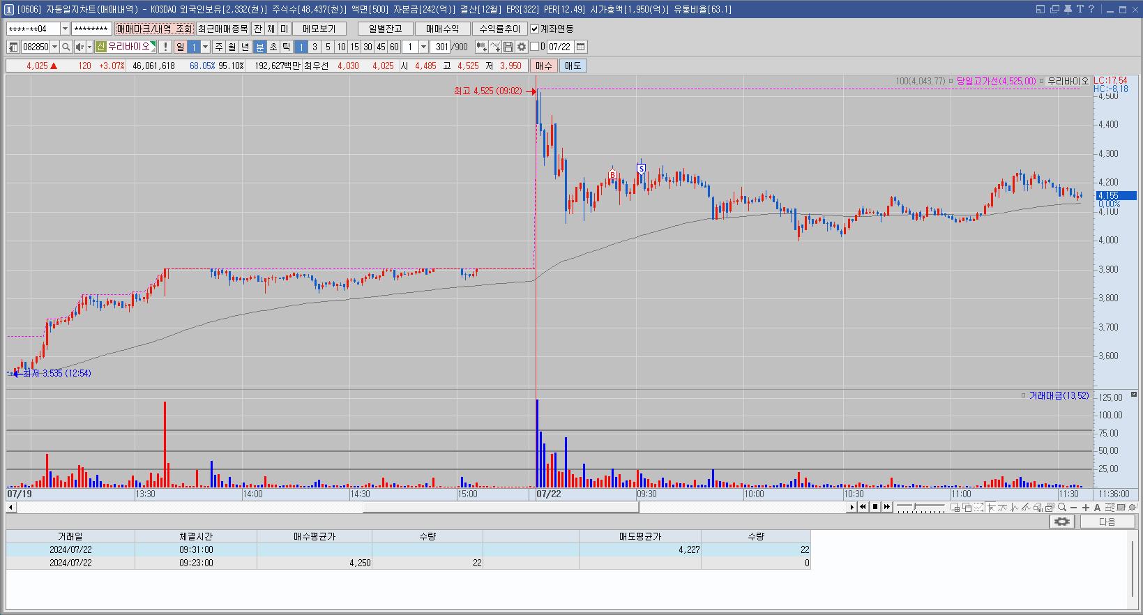 우리바이오 | -4.22 | 2,825 | 단기과열종목(3거래일 단일가매매) 지정예고 |