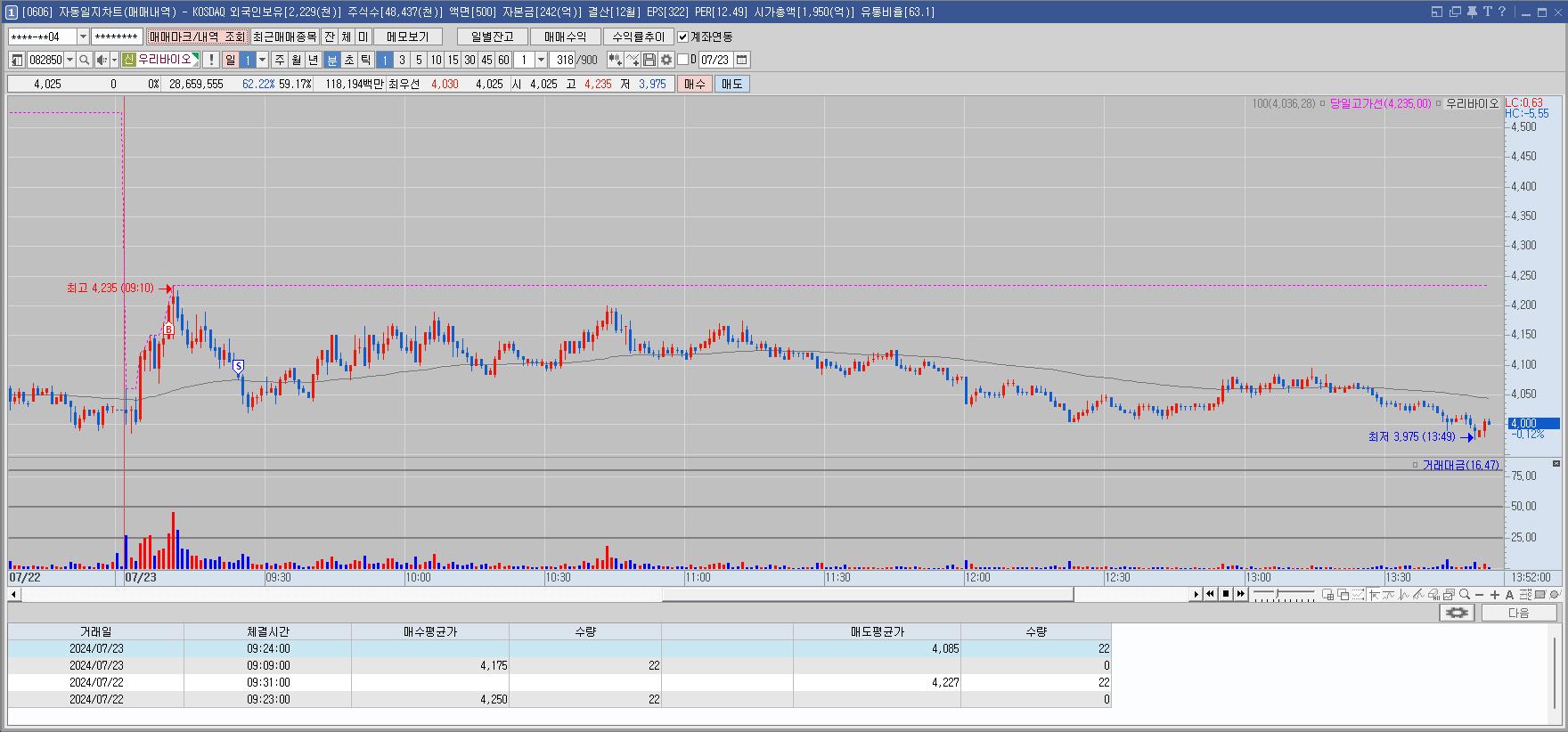 우리바이오는 안가서 손절했는데 이 종목은 잘 돌파후 하락을 안하는 모습에 재돌파시 매수하고