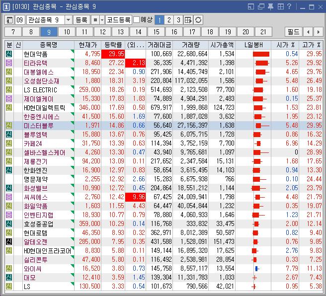 상승 초입에 매수하지 못하고 어느정도 올랐을때 발견한다면 1등주를 빠르게 찾아서 기회를 보자