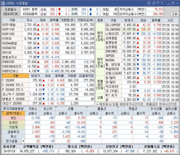 2024년 7월 26일(금) 특징주 및 시간외 / 매매일지