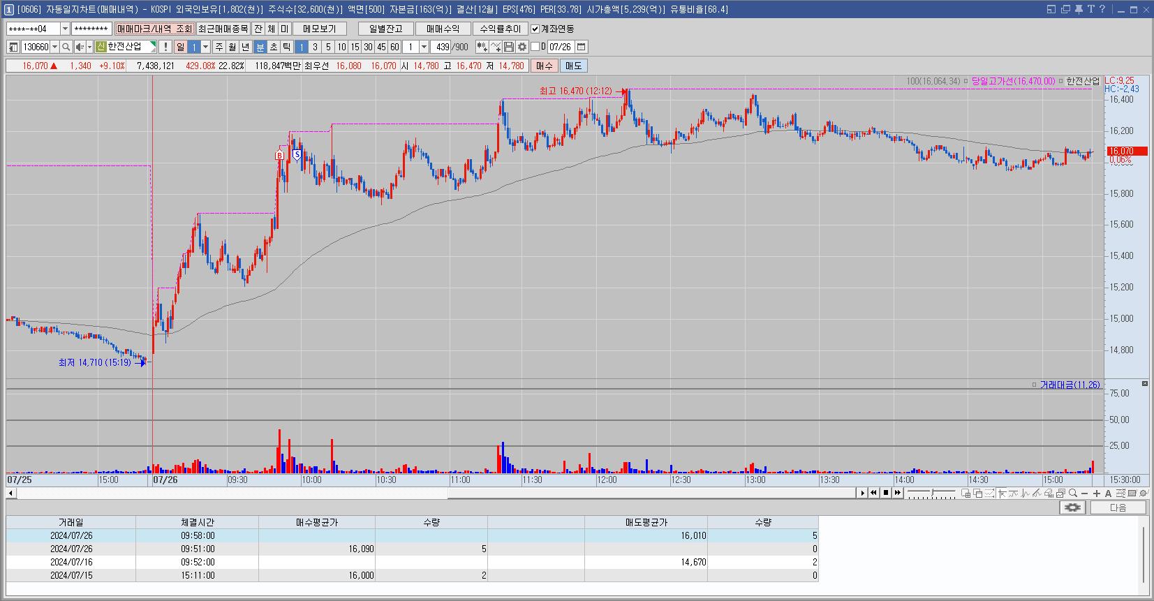 좋은 자리로 보여서 자주 막히던 저항구간을 뚫었을때 샀다가 고점에 물려서 몇일간 맘고생하게 만든 종목