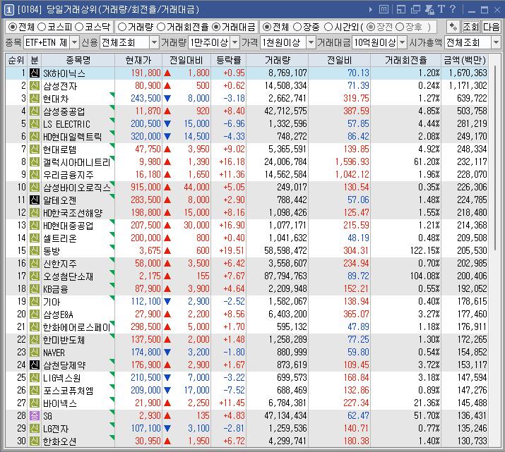 투자주의]단일계좌 거래량 상위종목